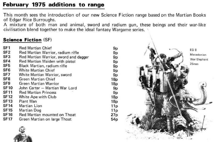 I just found on this site Dear Tony Blair a number of photos and informations about my soft spot on old style martian figures. They were Hinchliffe figures sculpted by the late Peter Gilder.