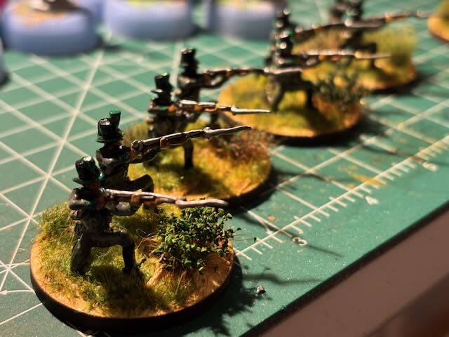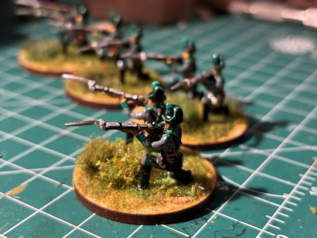 Tyrolean Jagers by parallels · November 29, 2025 Just restored twenty very old Hinchliffe Napoleonic Austrian Tyrolean Jagers (AN10). They came up very nice mounted on skirmish order bases. Share