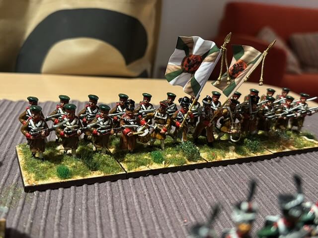Russian Napoleonic Perm Regiment by parallels · December 14, 2025 The first infantry battalion is now restored. The unit is in campaign dress and greatcoat. I had to do a lot of work to bring up some detail. I am rather satisfied now. Photos soon. Share